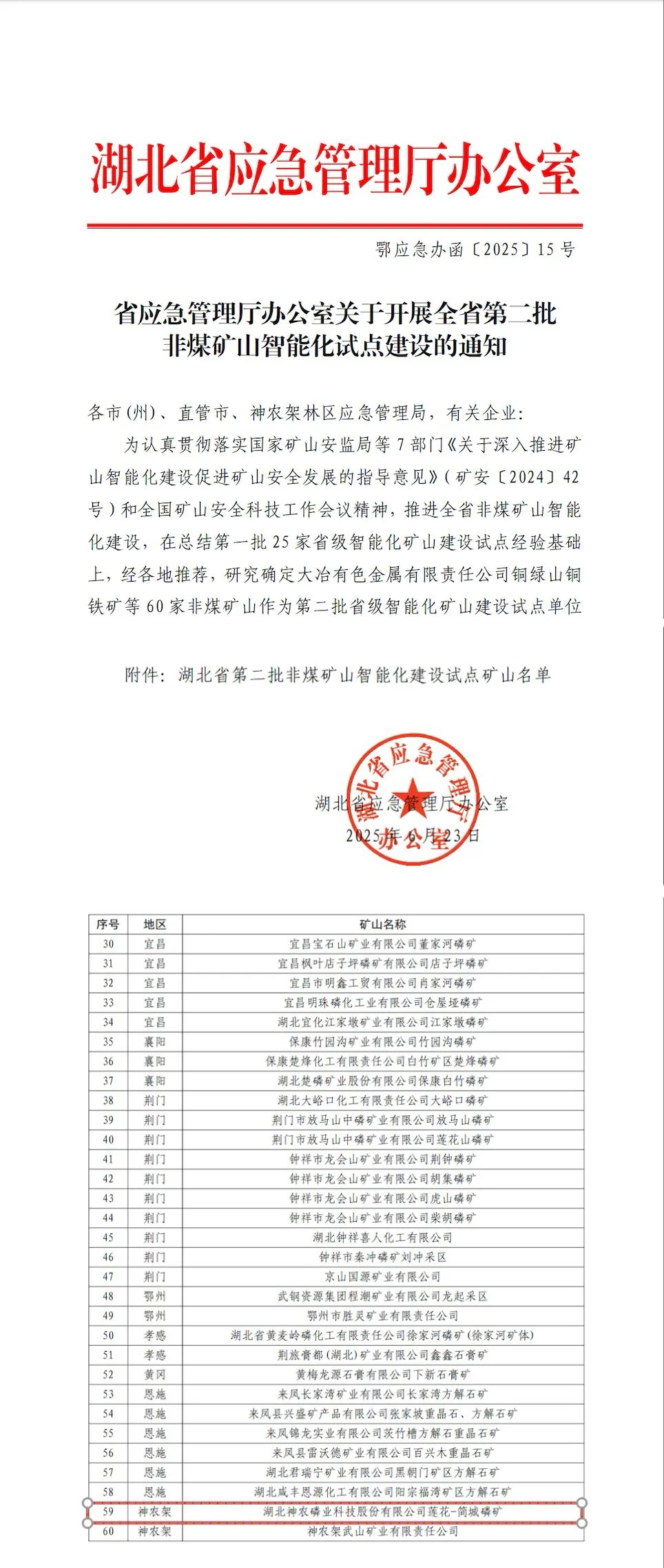 聯(lián)投礦業(yè)蓮簡磷礦入選湖北省第二批非煤礦山智能化試點建設(shè)名單