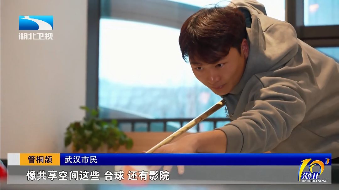 武漢市民?管桐頡:下班之后在這里待一會兒放松一下 ,像共享空間的臺球還有影院挺舒服的,東西都是免費的。